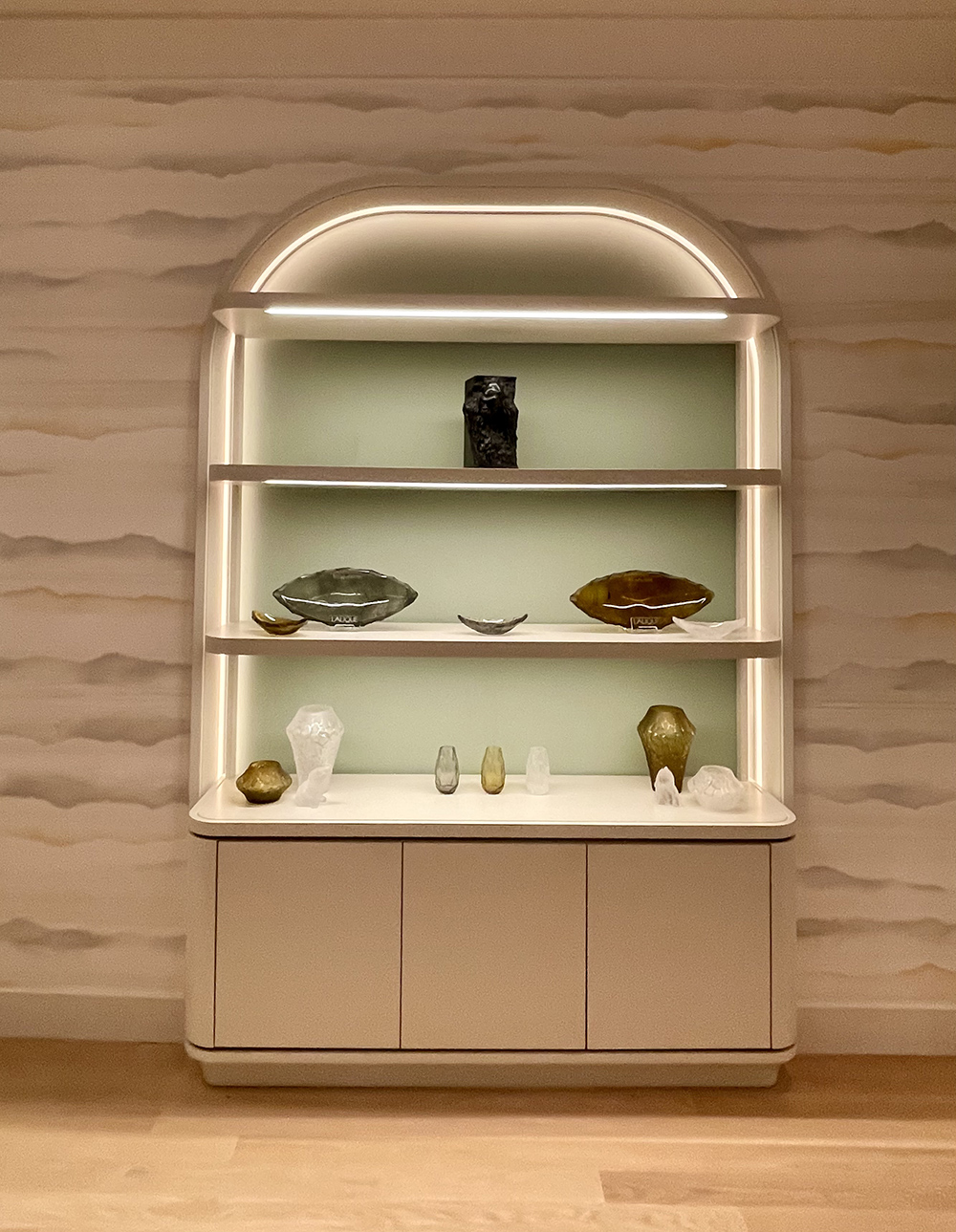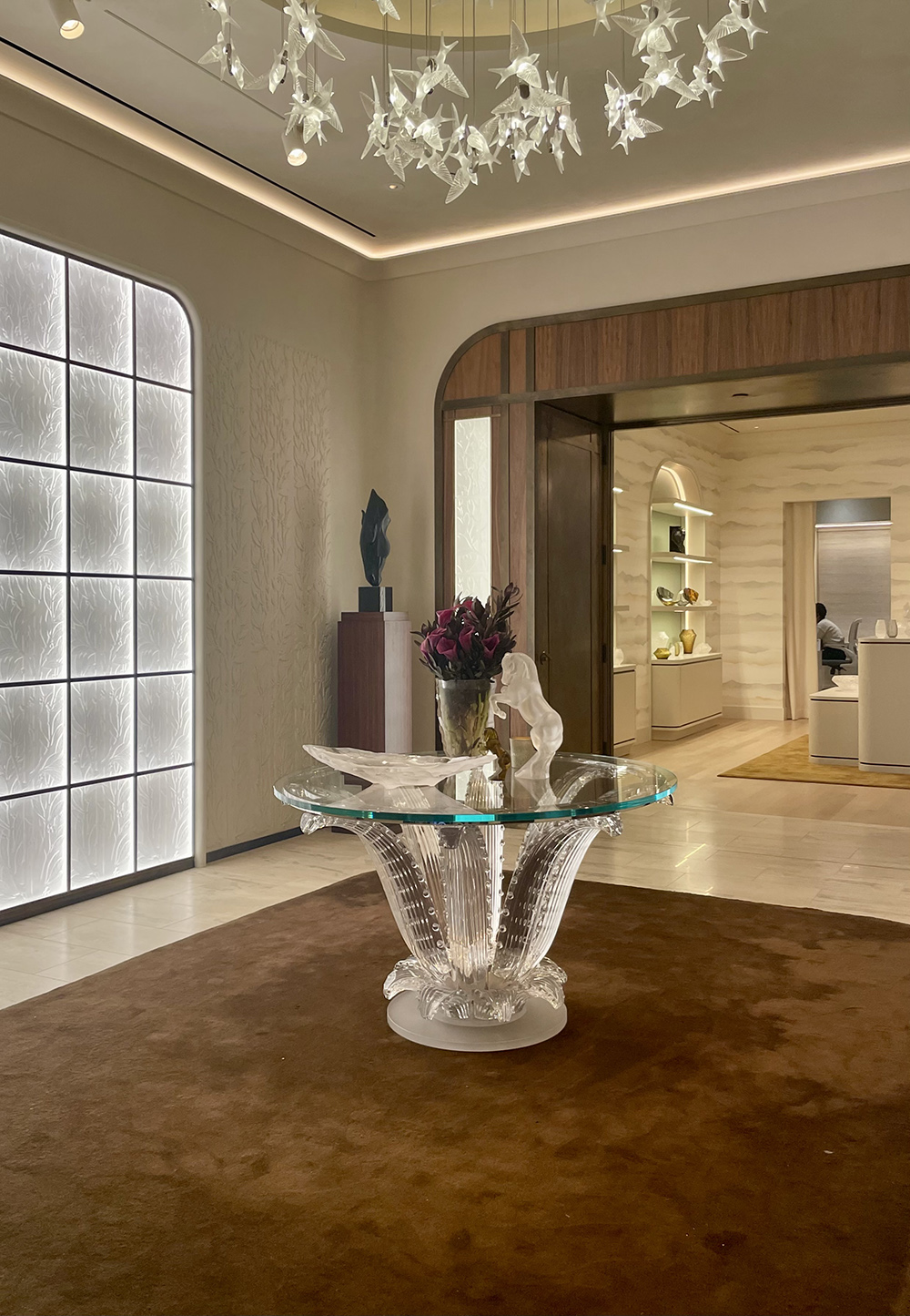 Crossing the threshold of the new Lalique (Paris) flagship, appropriately named “Maison D’Artiste,” in the Beaux Arts–style Chopard Mansion, takes customers on an excursion through the many facets of the Lalique experience. The townhouse, located at 21 East 63rd Street, features the brand’s iconic crystal creations, including new pieces and timeless classics housed on the first floor under an awe-inspiring atrium. The second floor welcomes visitors to a more intimate space featuring the Jewelry Salon, while the third floor art gallery features works of contemporary artists and designers such as James Turrell, Damien Hirst and Zaha Hadid.