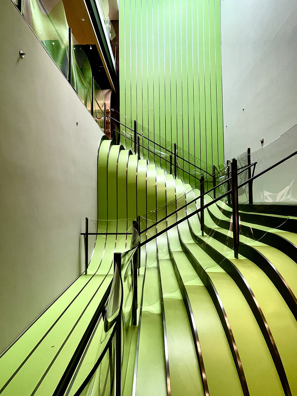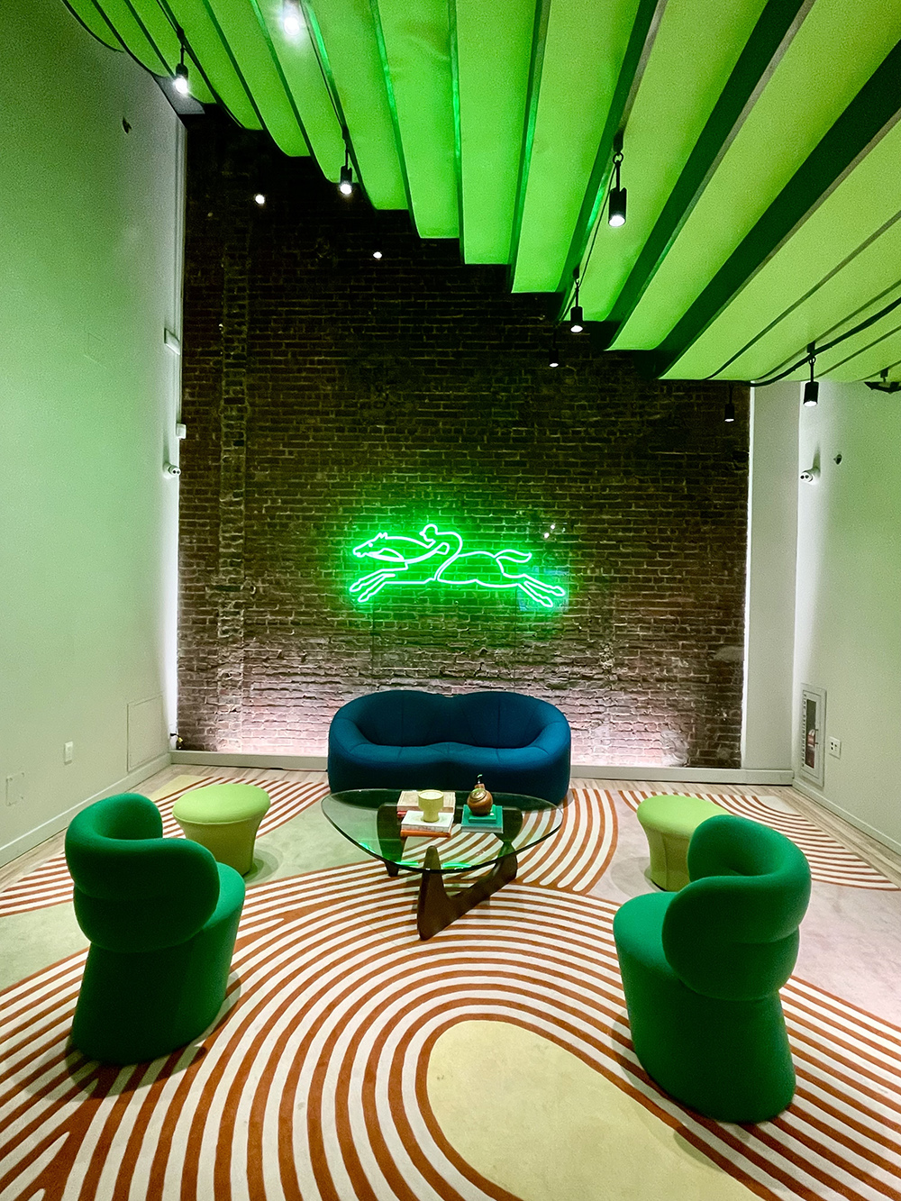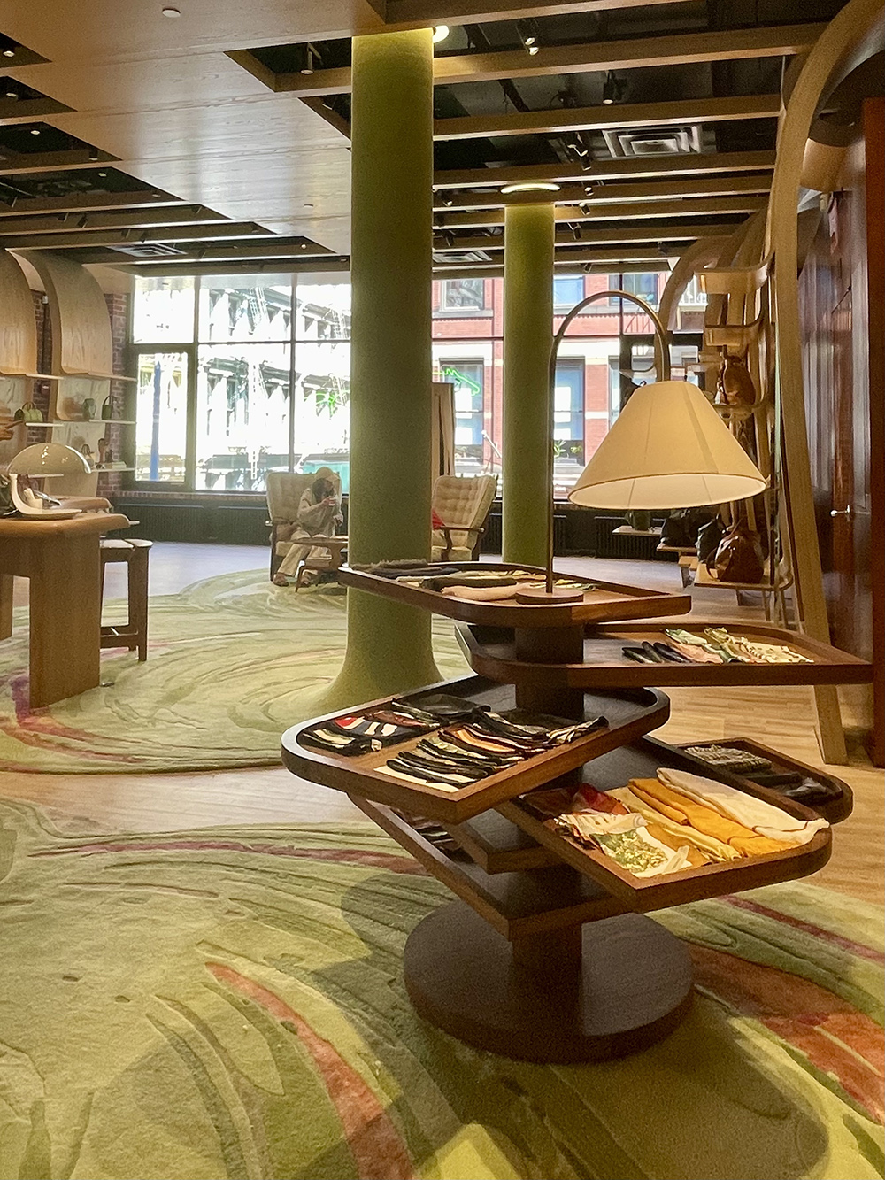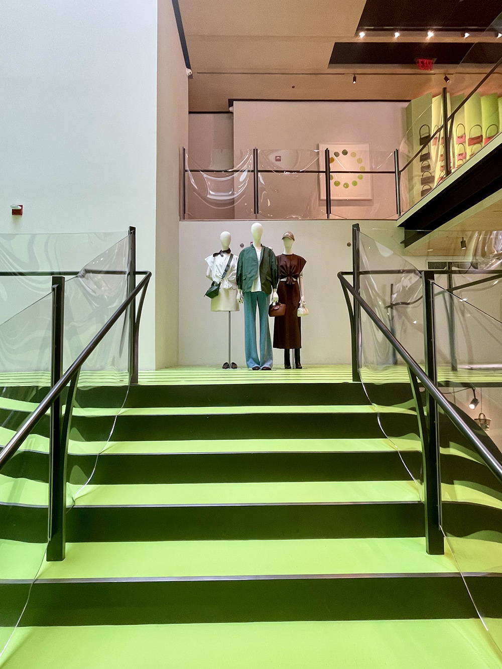 Taking the 6 train to SoHo to visit the renovated Longchamp store is well worth the subway fare. This two-story environment on the corner of Spring and Greene Streets provides a tactile and emotional experience way beyond the capabilities of pick-and-click. In a fully branded environment, the store blends art and high-end product offerings in a dynamic setting that includes its proprietary undulating green staircase and vibrant green rugs cascading from the ceiling onto carpeted pads on natural wood floors. (Read more in VMSD’s September/October 2025 issue).