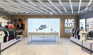 Beginning in August 2018, ABC-Mart Grand Stage opened three flagship store renovations, in the gleaming upscale Gangnam shopping district of Seoul, South Korea, in Tokyo’s ritzy Ginza district as well as in the city’s colorful, youthful and quirky Harajuku area. That’s where the muse goes.