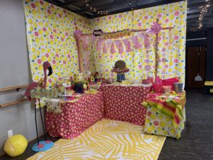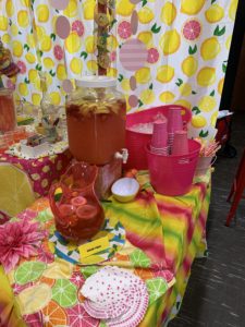 Update on my “Pink Lemonade Stand” window display from my previous blog: I set up a real live Pink Lemonade Stand (and worked it, too) at Emergent Arts during First Friday Gallery Walk for June Pride Month and their rainbow-themed art exhibit. My artwork is included in the show. I put in every lemon-flavored nibble I could find and made my famous Strawberry Lemonade including regular, sugar-free — and a “drunk” version with Deep Eddy Lemon Vodka. (And I made pink lemonade jello shots, as well, for the 21 and older crowd.) A good time was had by all walking into a real live Lemonade Experience. I’m trying to make that my retirement plan.
